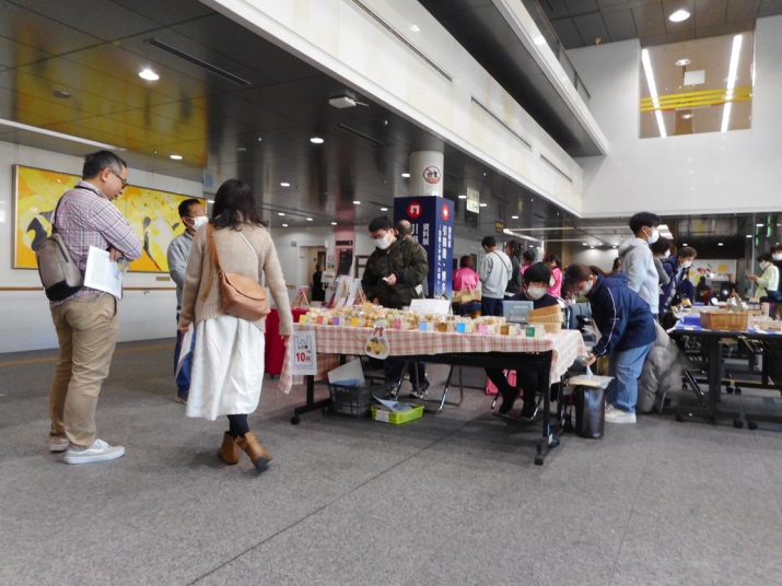 また出会い広場(ロビー)では障がい者施設・事業所等8団体が出店し、パン・お菓子・雑貨などの販売が行われ賑わいました。