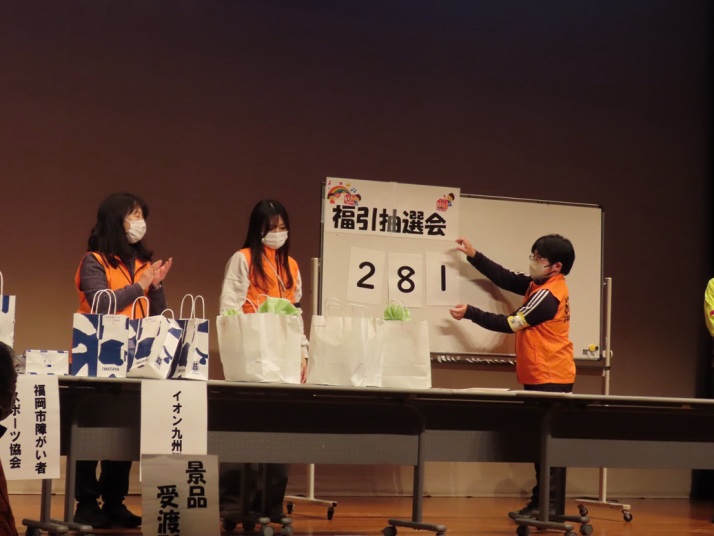 ご支援・ご協力をいただきましたボランティアスタッフ、関係団体、駐車場を提供してくださいましたFFG人材開発センター、若葉高等学校の皆さま、福引抽選会に商品を提供くださいましたアビスパ福岡(株)、イオン九州(株)、(株)ヒロカネの皆さまに心よりお礼申し上げます。ありがとうございました。